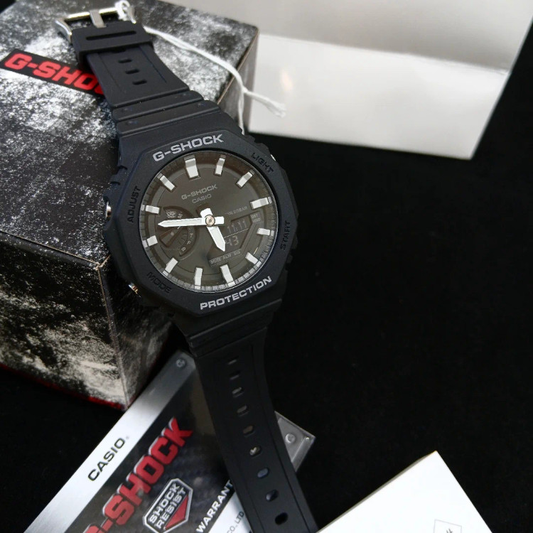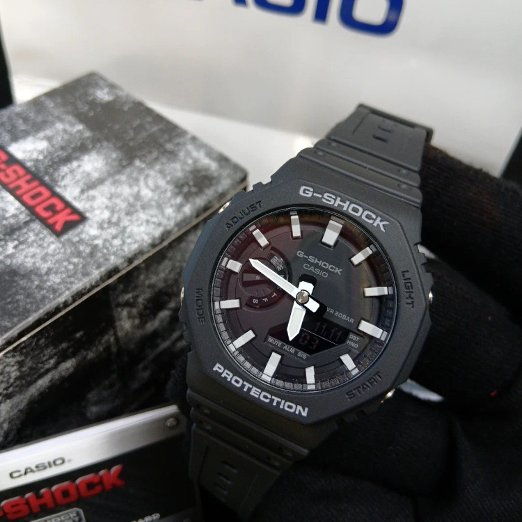 ساعت GSHOCK مدل GA-2100 مناسب برای آقایان و خانم ها، با نوع کاربرد روزمره و ورزشی. این ساعت دارای فرم قاب چند ضلعی و نوع صفحه نمایش دیجیتال و آنالوگ است. جنس قاب از رزین و کربن ساخته شده و جنس شیشه آن معدنی است. ساعت مقاومت در برابر آب ۲۰۰ متر دارد و از انرژی باتری بهره میبرد.